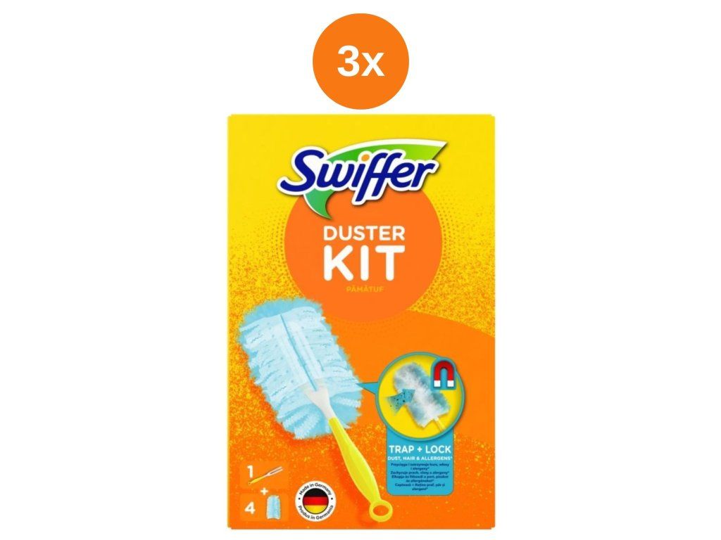 3x držalo za komplet krp Swiffer Duster + 4 rezervne krpe za prah.