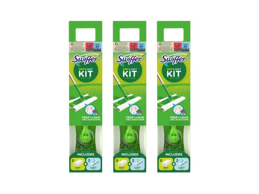 3x Swiffer začetni komplet pometačev z 1 x ročajem + 8 x krpami za prah + 3 x čistilnimi robčki