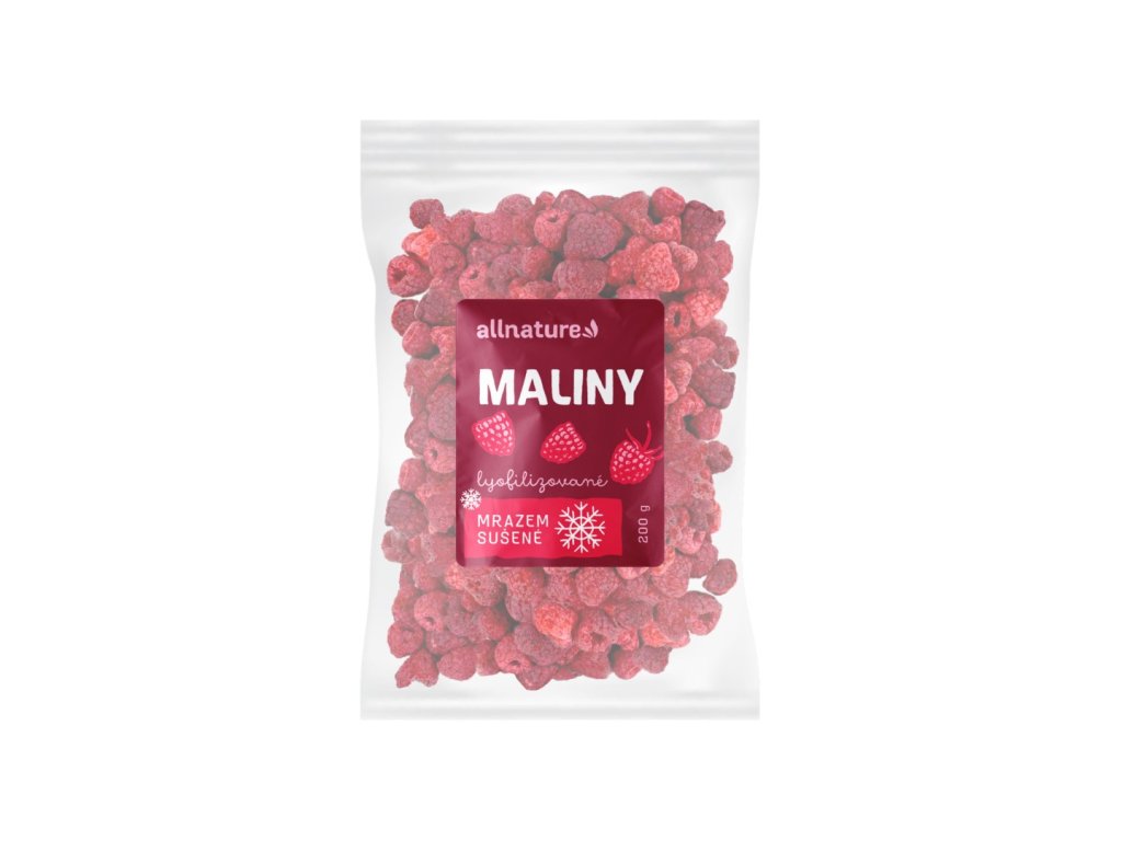 Liofilizirane maline ali liofilizirane maline so podvržene postopku, pri katerem se sadje hitro zamrzne in nato počasi posuši v vakuumu. S tem se odstrani 95 % vode in ocetne kisline. Liofilizirano sadje ohrani svoj okus, aromo, teksturo in naravno barvo, pa tudi vitamine, hranila in minerale, ki jih običajno najdemo v svežem sadju. Če je pravilno shranjeno, ima liofilizirano sadje dolgo obstojnost. Liofilizirane maline ohranijo lastnosti svežih malin s prijetnim hrustljavim okusom.