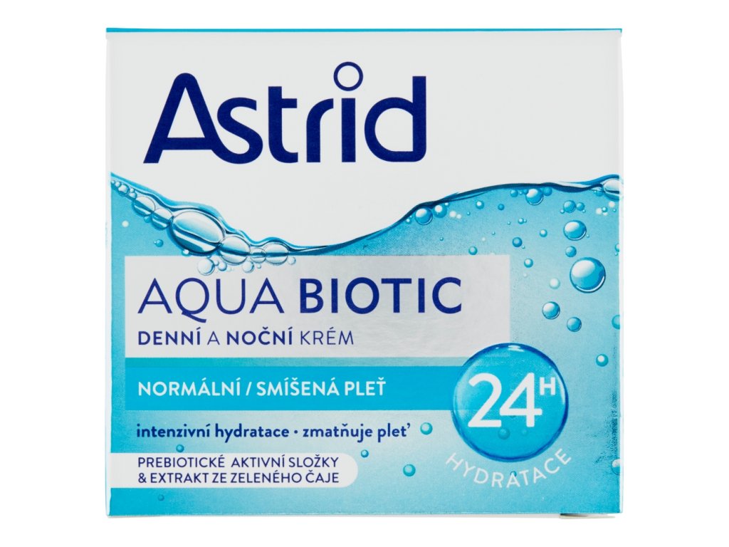 Astrid Aqua Biotic je dnevna in nočna vlažilna krema, ki koži zagotavlja intenzivno hidratacijo do 24 ur in jo hkrati matira. Lahka, sveža formula, obogatena z vitaminskim kompleksom, ščiti kožo pred neugodnimi vplivi okolja in pomaga izboljšati njeno elastičnost. Visoko učinkovit vlažilni kompleks HYDROVITON Plus prispeva k ohranjanju optimalne ravni hidratacije v koži in jo pusti žametno mehko in voljno. Vaša koža bo lepo gladka, bolj zdrava in naravno sveža! Dermatološko testirano.