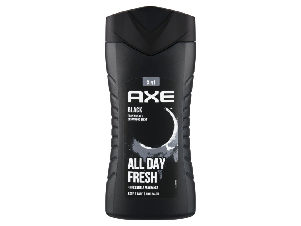Gel za prhanje Axe Black je ključ do samozavesti. Očaral bo vsakega moškega s svojim svežim, izrazitim vonjem, ki poudarja čisto moškost. Daje občutek svežine in sproščenosti. Zgornje note dišave so melona, bergamotka, mandarina in hruška. Osnovne note so cedra, pačuli in mošus. Srčne note so kardamom in frezija.