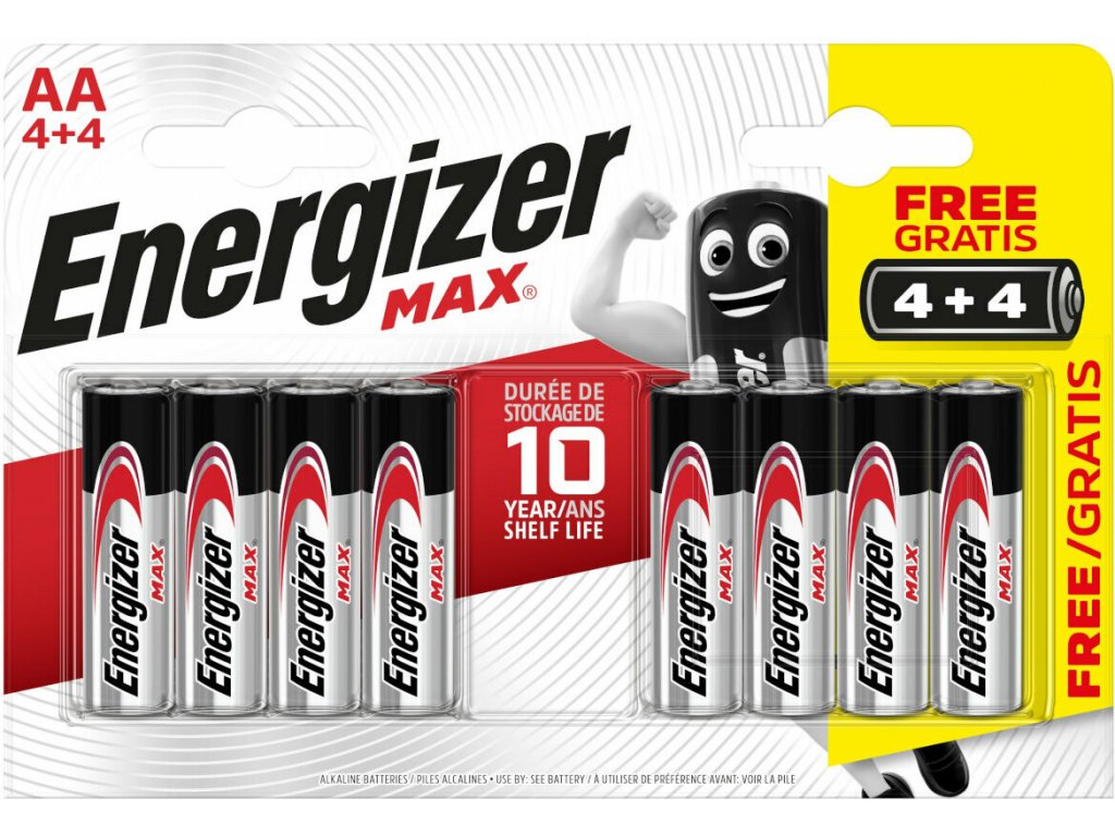 Energizer Max AA so klasične baterije, ki so del opreme skoraj vsakega gospodinjstva. Brez njih ne morete v daljinskih upravljalnikih, otroških monitorjih, urah ali igračah. Svinčnikova baterija Energizer Alkaline Power AA v pakiranju po 24 je primerna za vsakodnevno uporabo. Alkalna baterija za enkratno uporabo z napetostjo 1,5 V. Nova tehnologija PowerSeal omogoča shranjevanje energije v baterijah do 10 let, oziroma baterije je mogoče shranjevati do 10 let! Baterije imajo zanesljivo delovanje za naprave, ki se uporabljajo vsak dan, s približno 50 % večjo kapaciteto kot običajne alkalne baterije.
