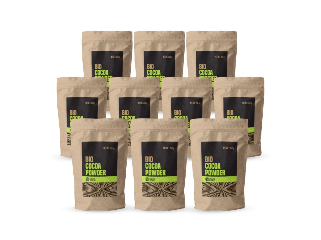 BIO kakav v prahu je ena izmed visokokakovostnih in zdravih sestavin, ki se bo odlično podala v vsako zdravo prehrano. Osnova je razmaščen kakav v prahu v BIO kakovosti z 10–12 % kakavovega masla, ki mu daje nezamenljiv okus in očarljivo aromo. Ne vsebuje sladkorja in ima visoko vsebnost beljakovin, kar bodo cenili vsi aktivni ljudje, saj prispeva k rasti in ohranjanju mišične mase. Razveselilo vas bo tudi dejstvo, da ima kakav v prahu res visoko vsebnost vlaknin.