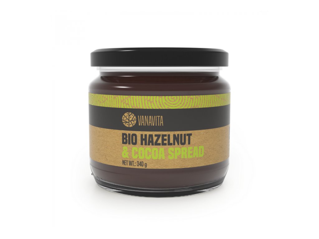 BIO lešnikova krema s kakavom - okusna oreščkasta poslastica, polna nenasičenih maščobnih kislin in beljakovin, z neustavljivim okusom lešnikov in kakava