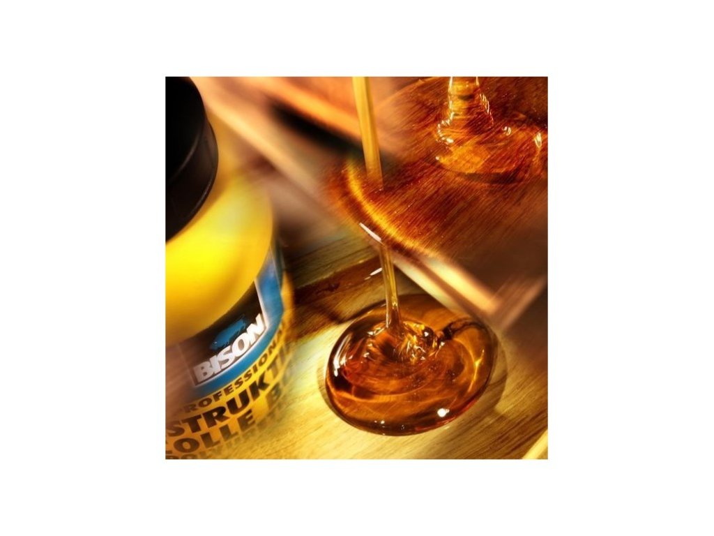 Bison PU MAX je visoko trdno tekoče poliuretansko lepilo za močno obremenjene spoje. Namenjeno je lepljenju v zunanjih in notranjih prostorih. Lepilo je odporno na vodo v skladu s ČSN EN 204 D4, vremenske vplive in temperature od -20°C do +125°C. Pokritost 5 m2/kg. Ne vsebuje topil. Rahlo se peni (približno 10 %) in se po strjevanju lahko premaže. Pogoj lepljenja: eden od lepljenih materialov mora biti vpojen (porozen). PODROČJE UPORABE: Namenjeno je za močno lepljenje trdega in mehkega lesa (vključno z eksotičnim), ivernih plošč, MDF in OSB plošč, PVC, ABS, kovin, mavca, trdih pen, polistirenske pene, izolacijskih materialov, plute itd. na različne materiale, kot so beton, zid, les, omet, pluta, opeka itd. Idealno je za strukturno lepljenje npr. vrtnega pohištva, pergol, stopniščnih stopnic, lesenih oblog, modelarstva in kjer je konstrukcija izpostavljena visoki vlagi in vodi. NAVODILA ZA UPORABO: Površine, ki jih želimo lepiti, morajo biti suhe in brez prahu. Lepilo nanesite na eno stran z lopatico ali čopičem. Plast ne sme biti debelejša od 1 mm. Obdelovalnost lepila 30 minut. Dele združite in jih trdno pritisnite ali vpnite s sponkami vsaj 4 ure (priporočeni tlak je 2 - 5 kg/cm2). Spoj bo dosegel svojo funkcionalno trdnost po 24 urah. Nestrjeno lepilo lahko odstranite z acetonom, strjeno lepilo pa le mehansko. NASVET: Po 2-3 urah odvečno, še ne popolnoma strjeno peno, ki se širi iz spoja, odstranite z ostrim rezalnikom. Ko se popolnoma strdi, je odstranitev zelo težka. POMEMBNO: Ne uporabljajte pri temperaturah pod +5 °C. Priporočena vsebnost vlage v lesu od 10 % do 18 % (največ 25 %). Po uporabi embalažo dobro zaprite in shranjujte na suhem, hladnem mestu, zaščitenem pred zmrzaljo, pri temperaturi od +10 °C do +20 °C. Minimalni rok uporabnosti je 18 mesecev. Po odprtju se lahko skrajša.