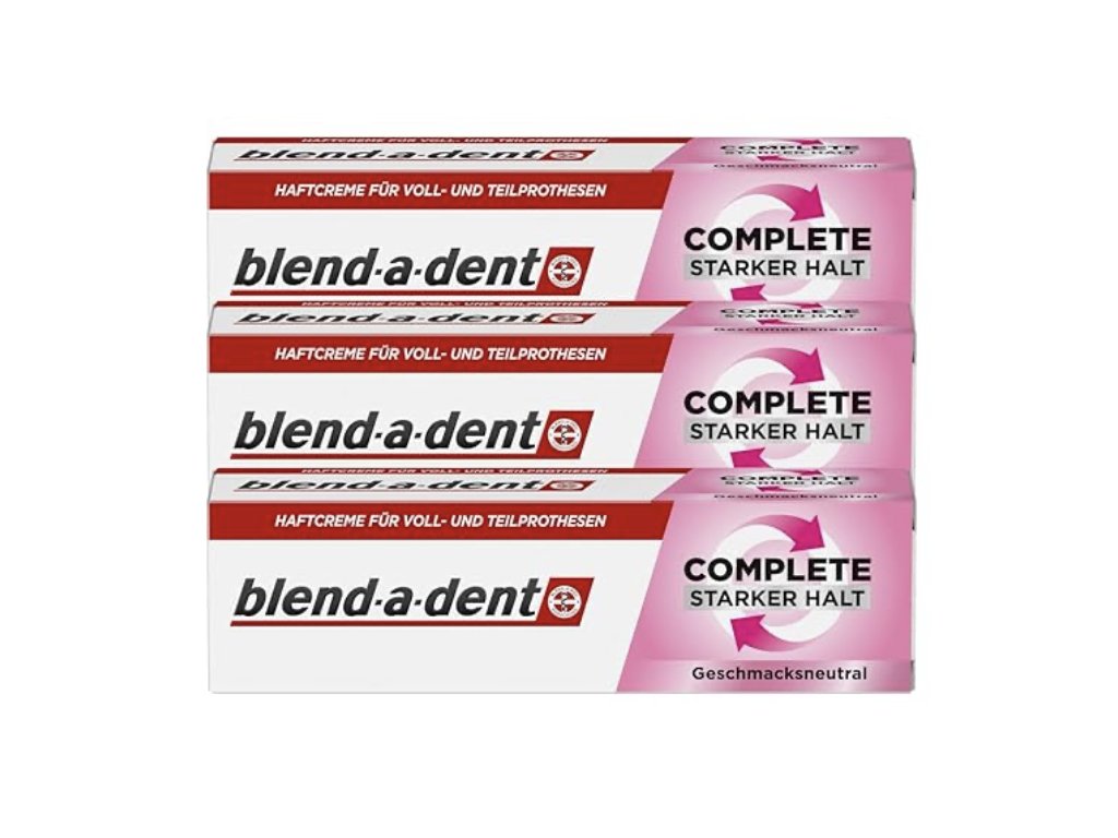 Blend-a-dent Complete zagotavlja odličen oprijem ves dan in ker ustvari mehko plast med dlesnimi in protezo, zagotavlja večje udobje. Prav tako pomaga zaščititi pred delci hrane, ki bi vdrli pod protezo. Lahko se preprosto sprostite in uživate v življenju v polnosti. Krema ima nevtralen okus.