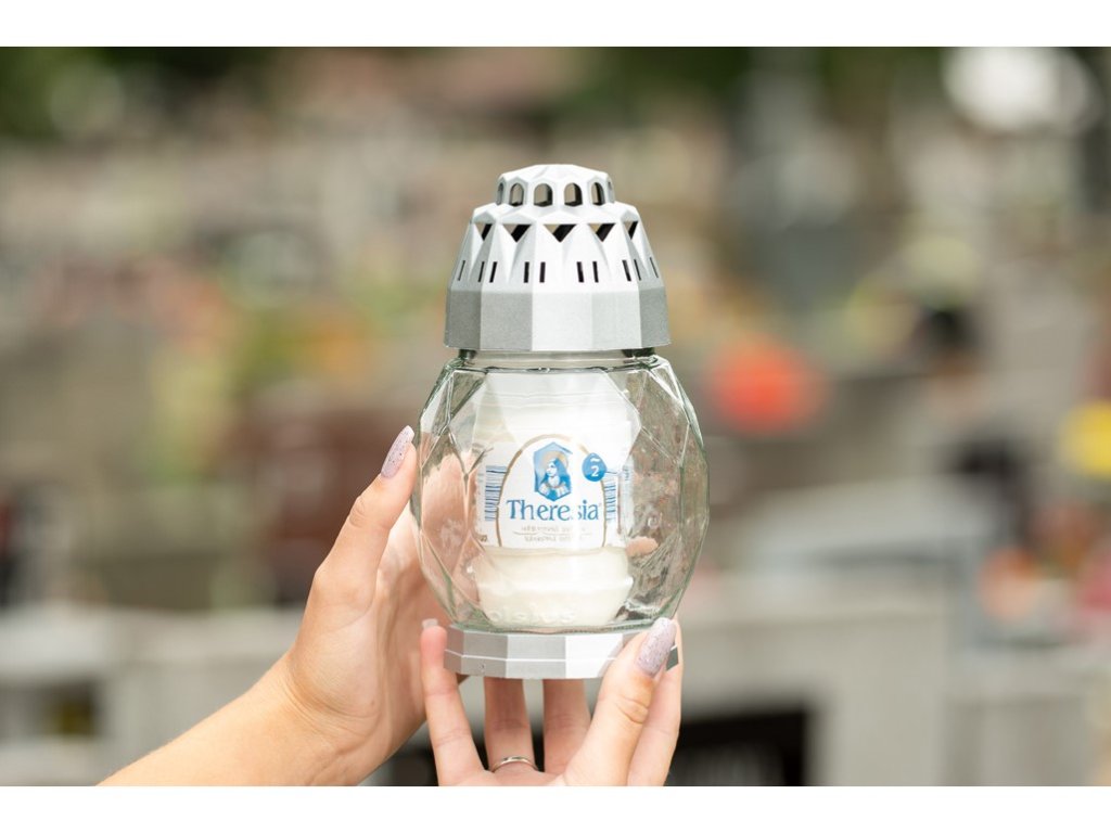 Ta sveča z diamantnim vzorcem gorenja 24 ur je idealna za okrasitev pokopališča in spomin na ljubljene. Njene dimenzije so 18 cm.Dodatni parametri