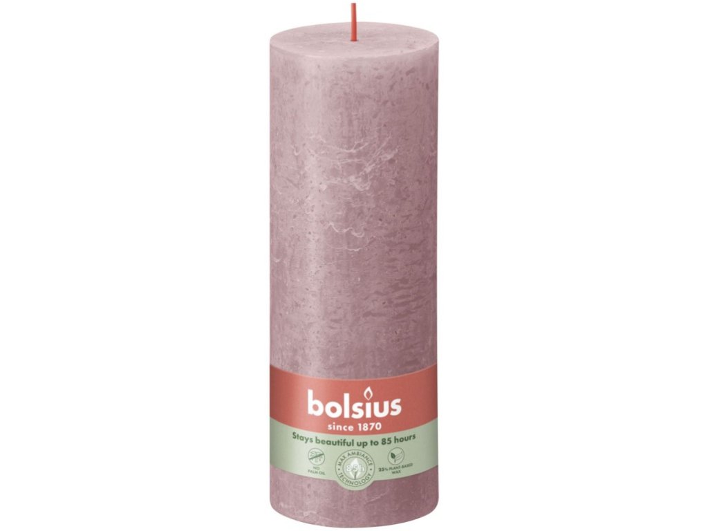 Visoka rustikalna sveča Bolsius v barvi pepelnate vrtnice bo vsakemu prostoru dodala romantiko in mir. Njena valjasta oblika in rahlo sijoča površina sta primerni tako za klasično kot moderno notranjost. Popolna je za svečnike ali kot samostojni element.Dodatni parametri
