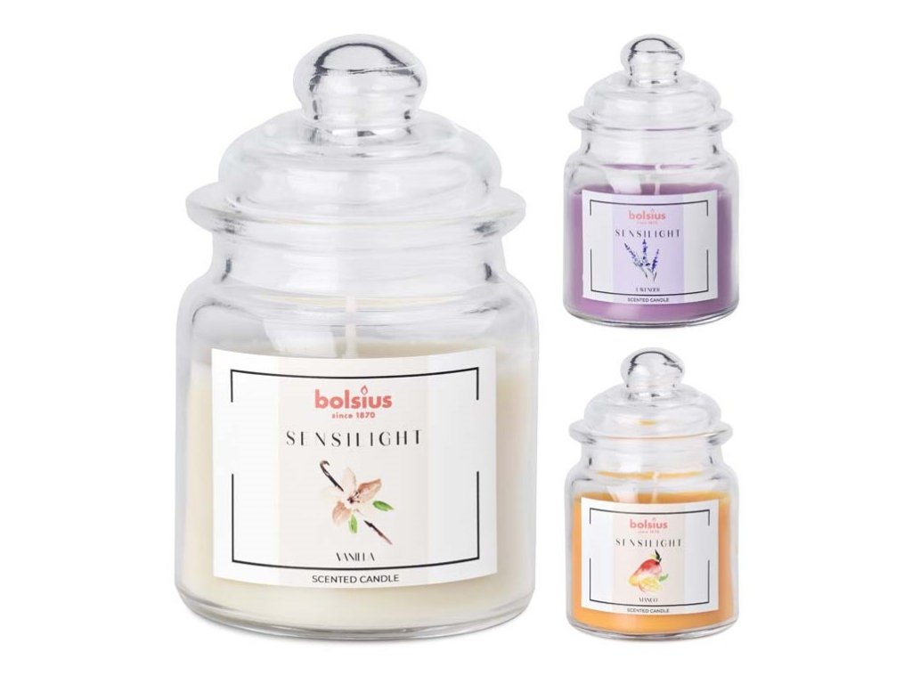 Bolsius Sensilight Dišeča sveča v kozarcu s pokrovčkom, 79x126 mm, MIX - Vanilija, Sivka, Mango