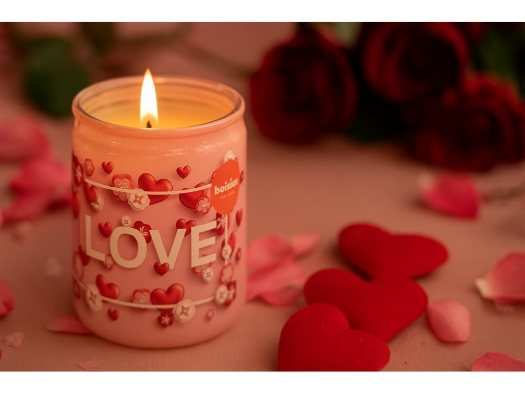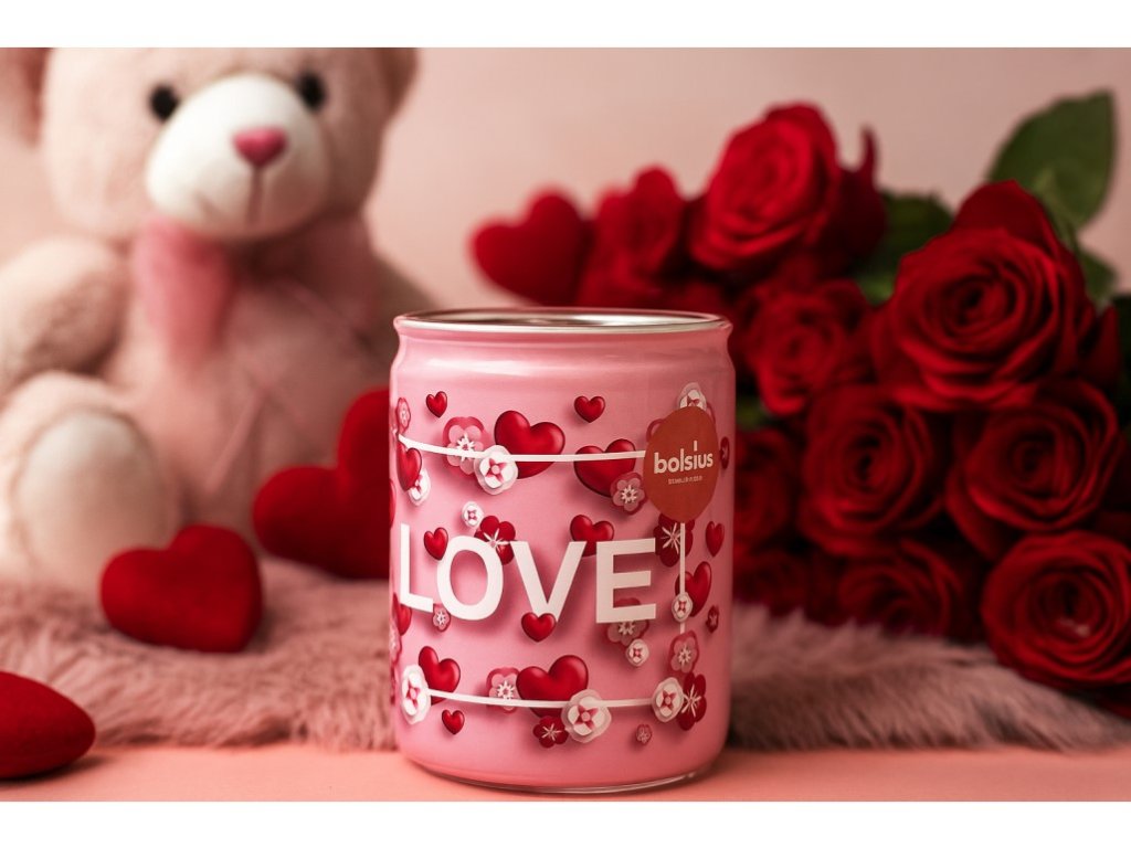 Bolsius steklena srčka ljubezen, vanilija, dišeča sveča 68x80 mm