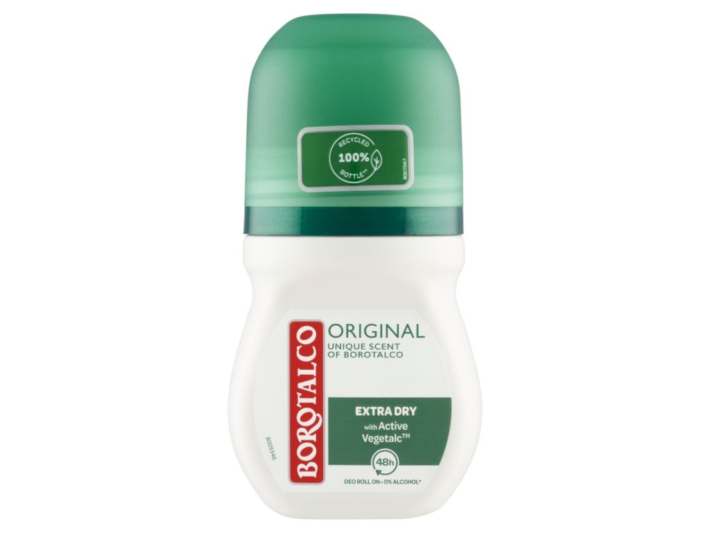 Borotalco Original z nezamenljivim vonjem Borotalco, zahvaljujoč naravni vsebnosti mikrotalka, učinkovito vpija znoj in zagotavlja prijetno suho kožo vsak dan. Z nezamenljivim vonjem Borotalco. Unisex deodorant. Zanesljiv DEO učinek 48 ur. 0 % alkohola. Dermatološko testirano.