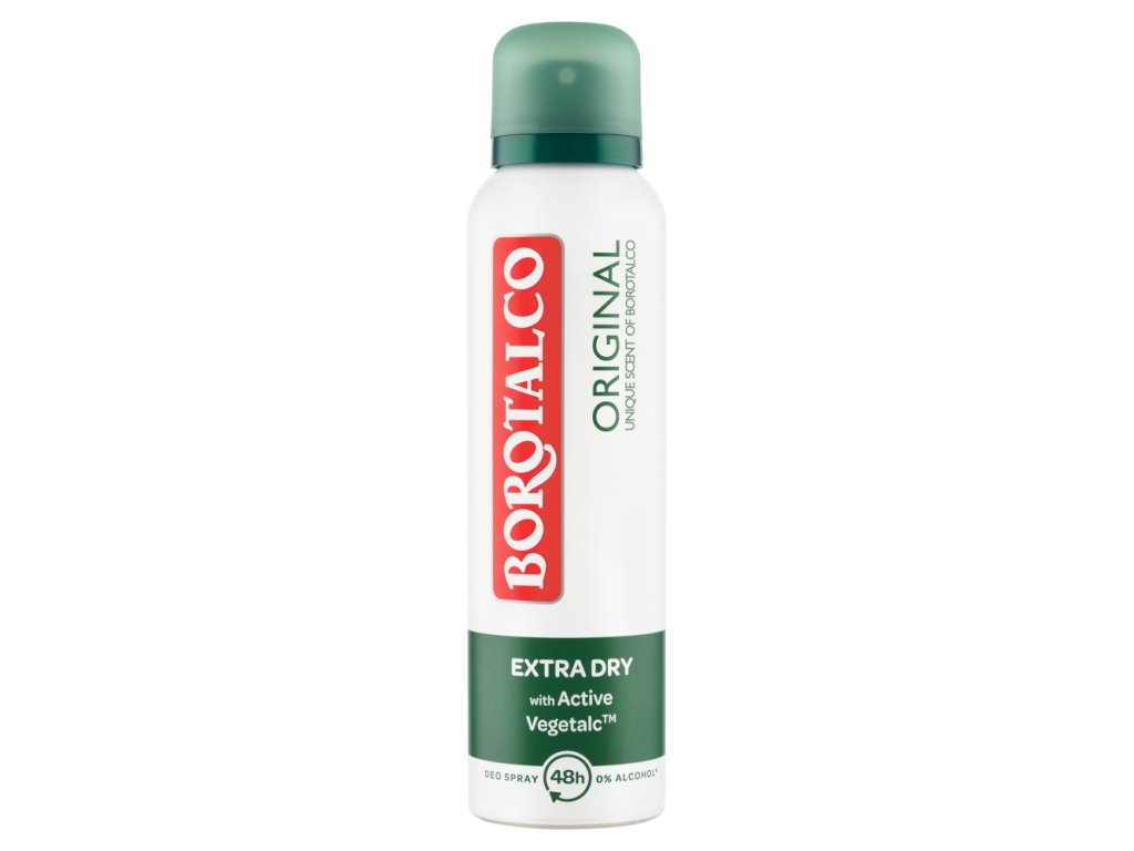 Borotalco Original z nezamenljivim vonjem Borotalco, zahvaljujoč naravni vsebnosti mikrotalka , učinkovito vpija znoj in zagotavlja prijetno suho kožo vsak dan. Z nezamenljivim vonjem Borotalco.