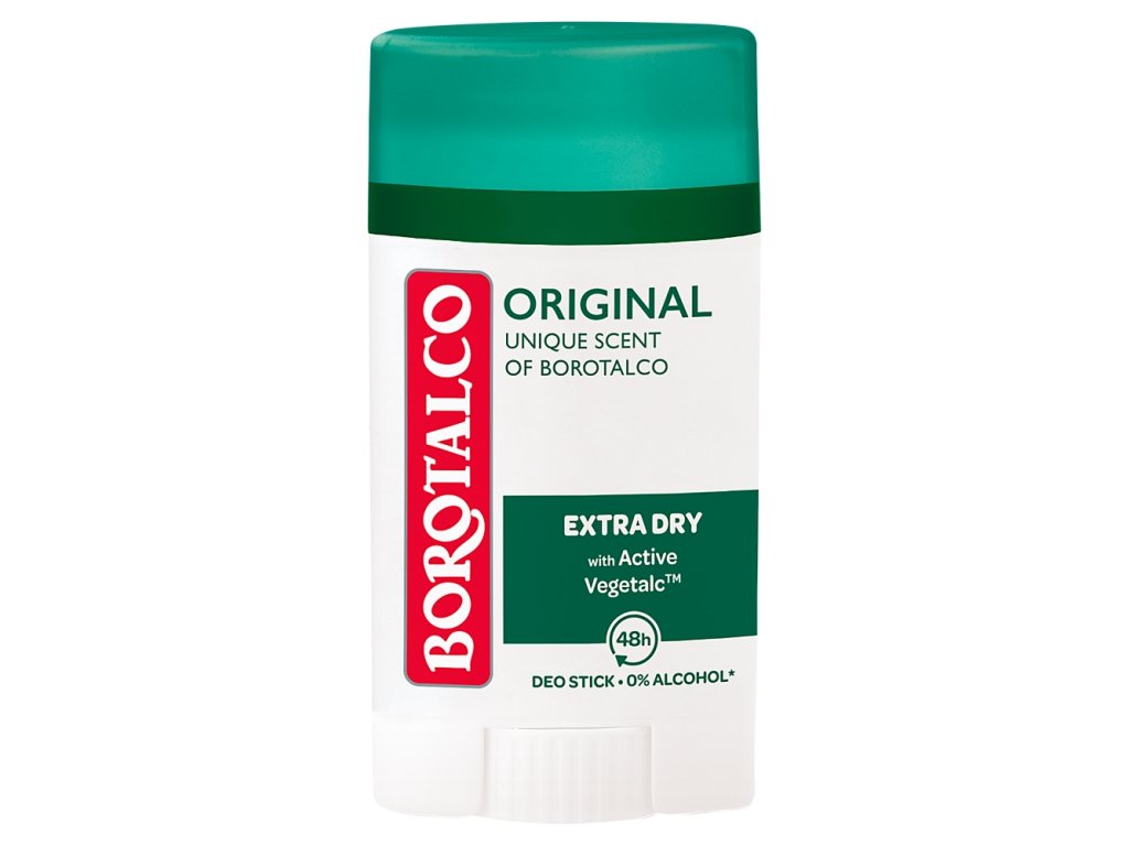 Borotalco Original z nezamenljivim vonjem Borotalco, zahvaljujoč naravni vsebnosti mikrotalka, učinkovito vpija znoj in zagotavlja prijetno suho kožo vsak dan. Z nezamenljivim vonjem Borotalco. Unisex deodorant. Zanesljiv DEO učinek 48 ur. 0 % alkohola. Dermatološko testirano.