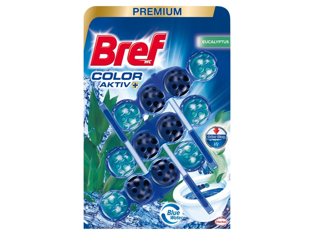 Bref Blue Aktiv = 1. Popolna čistoča med vsakim splakovanjem zahvaljujoč aktivnim snovem, ki jih vsebuje modra voda 2. Učinkovit proti vodnemu kamnu 3. Popolna svežina 4. Popolna higiena.