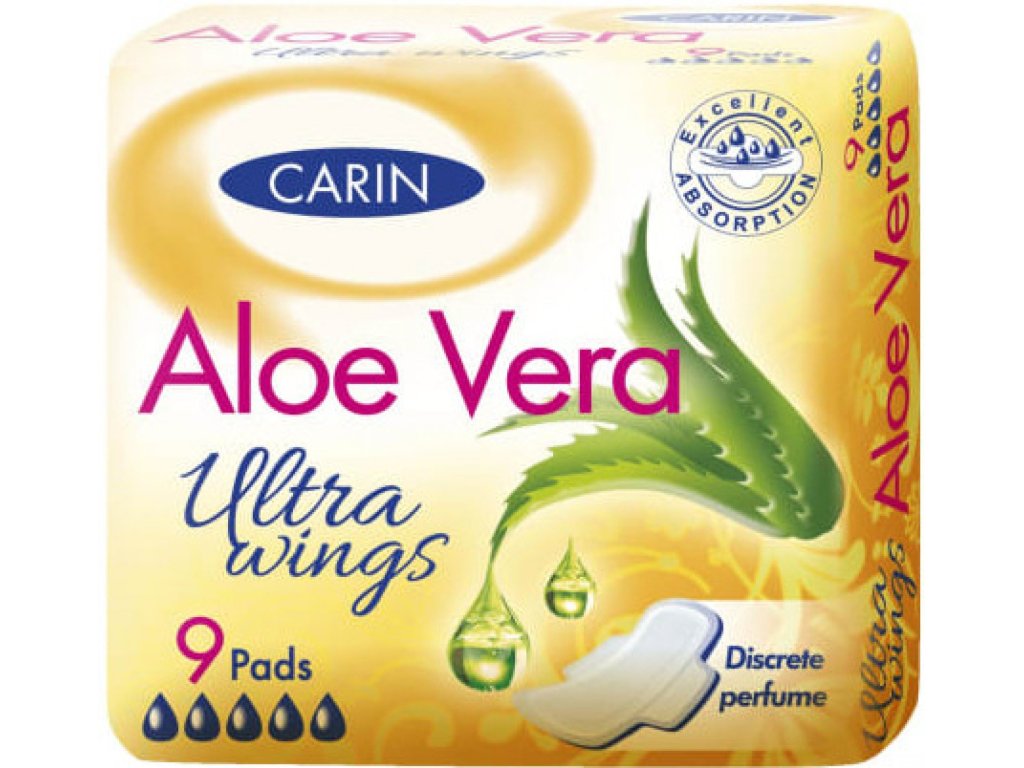 Carin Ultra Wings so tanke, individualno zavite, odišavljene krilate blazinice s priljubljenim vonjem aloe vere. Imajo bombažno površino FRESH SAFE.