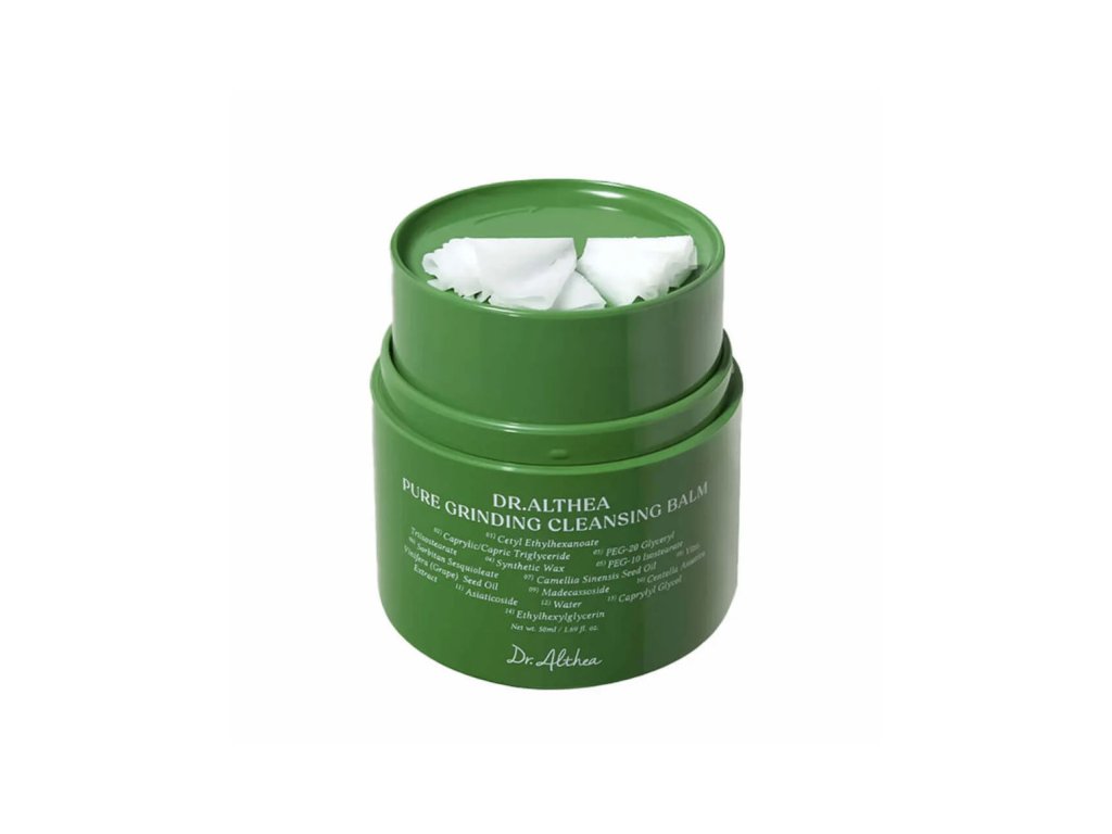 Dr. Althea - Pure Grinding Cleansing Balm - balzam za odstranjevanje ličil, primeren za vse tipe kože, z minimalistično sestavo in visoko učinkovitostjo. Vsebuje skrbno izbrane snovi, ki zanesljivo raztopijo ličila, SPF filtre in druge nečistoče. Osnova je iz zelenega čaja in olja grozdnih pešk, ki učinkovito očistita kožo, preprečujeta njeno izsušitev in jo po izpiranju pustita mehko in nahranjeno. Prisotnost izvlečka azijskega pupka skupaj z madecassosidem in aziatikozidom podpira regeneracijo povrhnjice in pomirja draženje. Balzam je shranjen v higienski embalaži, ki jo je treba obračati, da se vsebina premeša - ta način nanašanja poveča učinkovitost izdelka. Ob stiku s toploto kože se balzam spremeni v nežno čistilno olje. Sestava je popolnoma veganska.