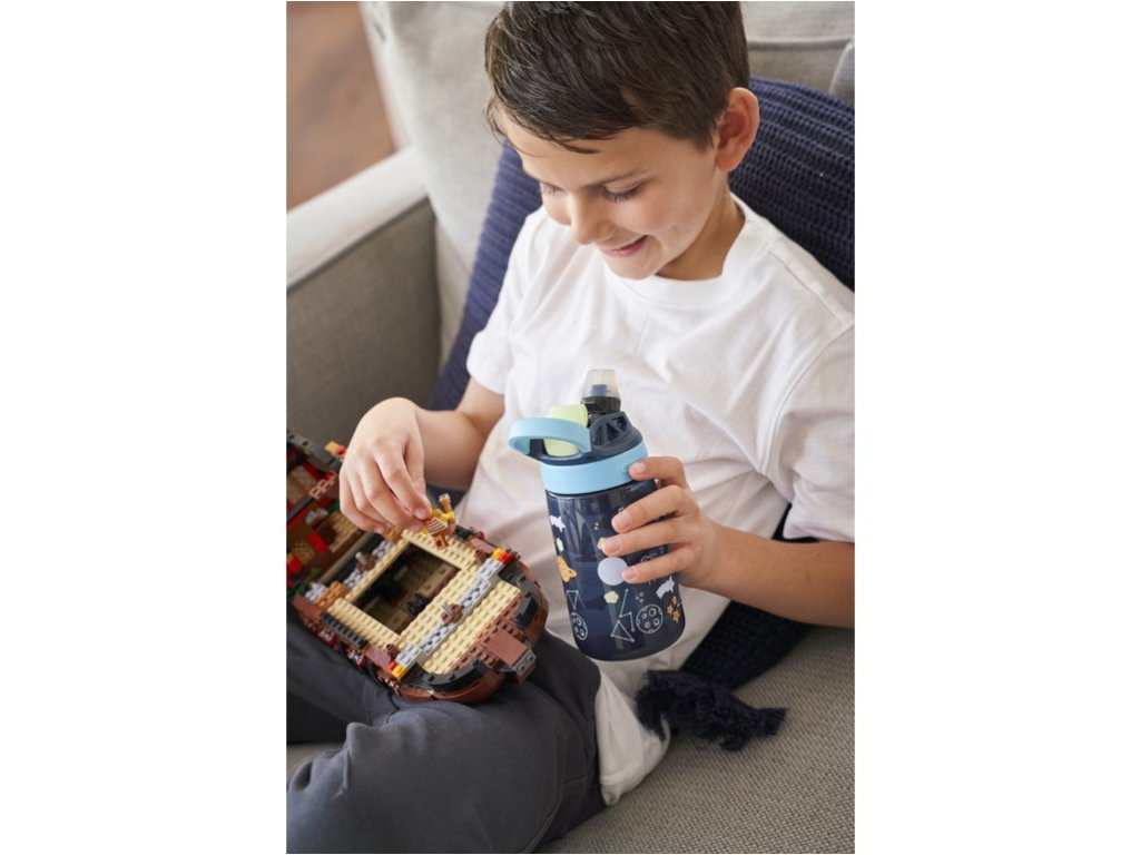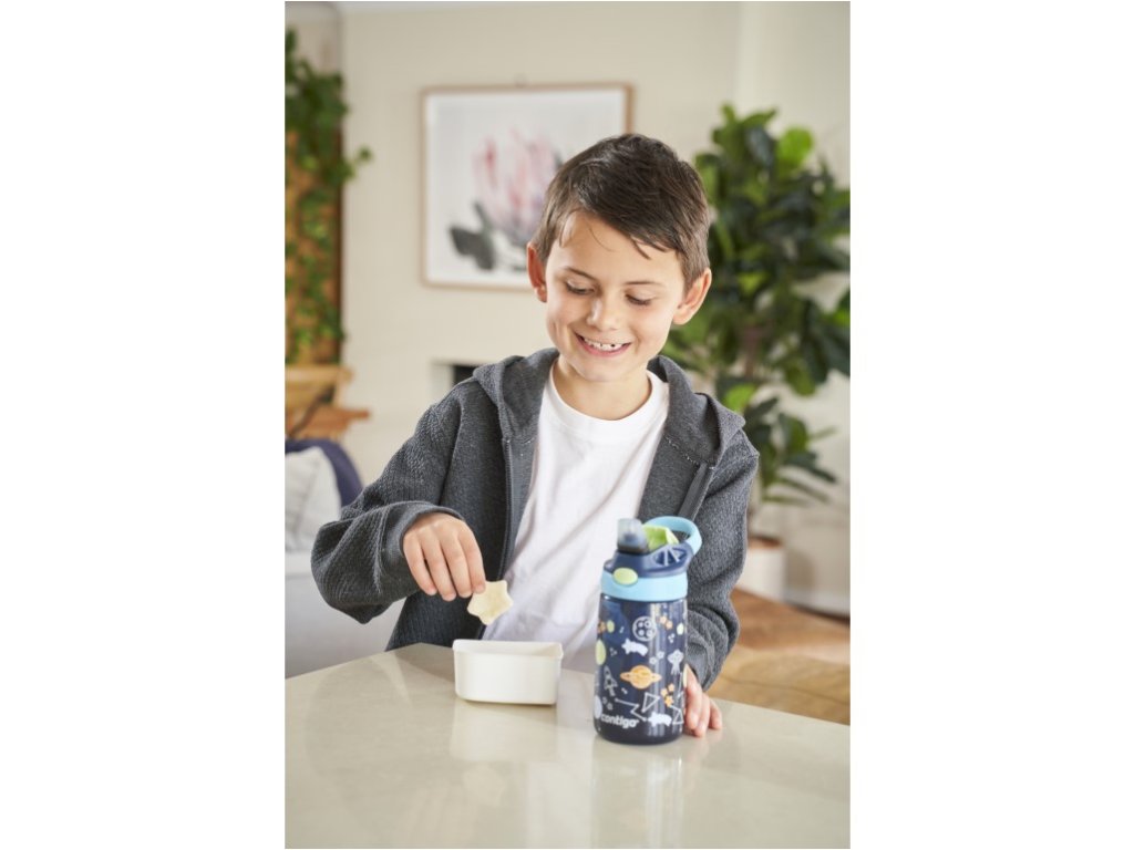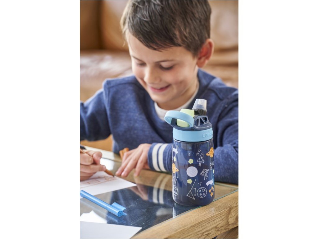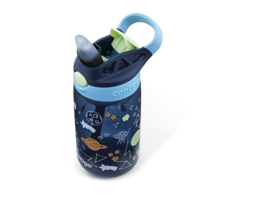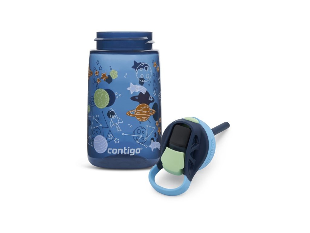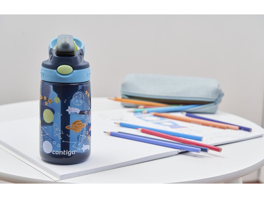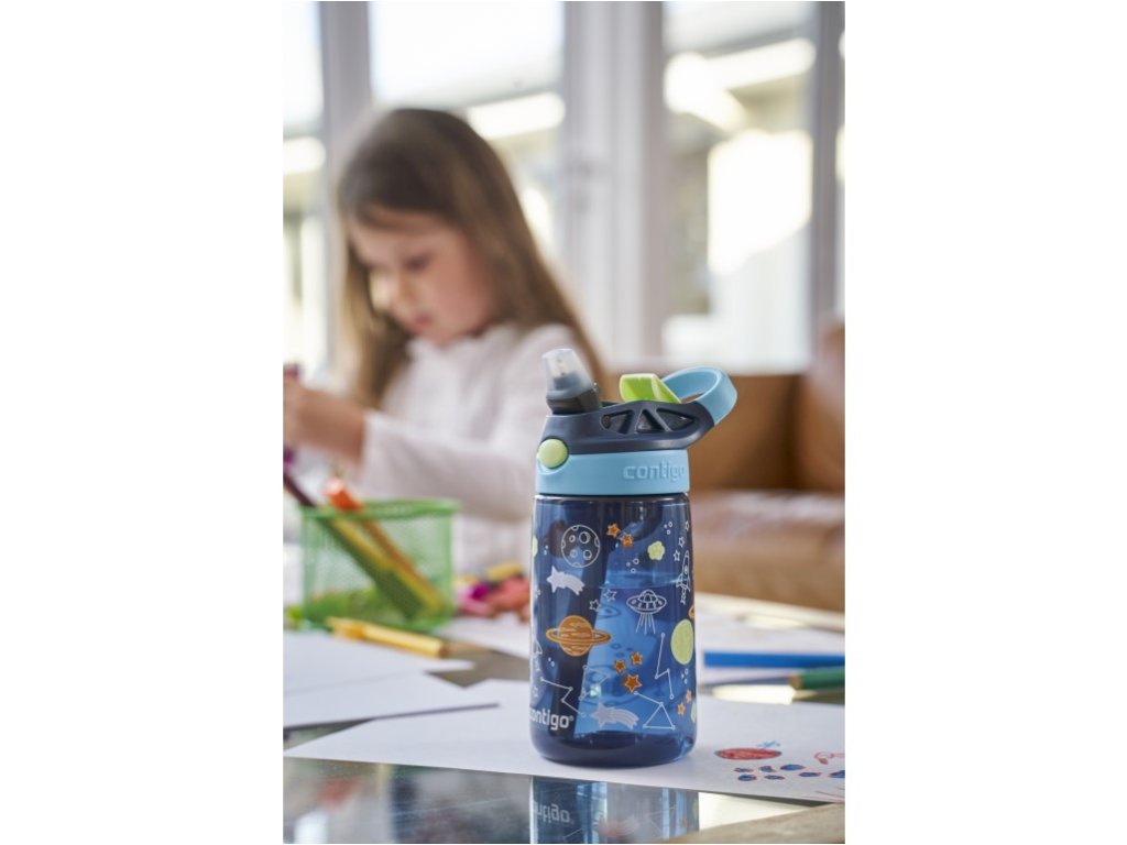 Otroška steklenička Contigo s tehnologijo AUTOSPOUT si je prislužila mesto v šolskih torbah po vsem svetu. Otroci radi pritisnejo gumb za odpiranje slamice, kar omogoča enostavno pitje z eno roko. Izliv je mogoče pospraviti pod pokrovček, kar ga ščiti pred umazanijo in ostanki. Pametno zasnovan izliv odpravlja vse kotičke in špranje, kjer bi se lahko nabirala umazanija, pokrovček pa je mogoče enostavno odstraniti za popolno čiščenje. Vsi deli so primerni za pomivanje v pomivalnem stroju na zgornji rešetki. Izdelana je iz polipropilenske plastike. Steklenička zaradi varnostnih razlogov ni primerna za vroče napitke. Izdelek ni odporen proti razlitju, ko je odprt, zato priporočamo, da ga nosite pokonci.Dodatni parametri