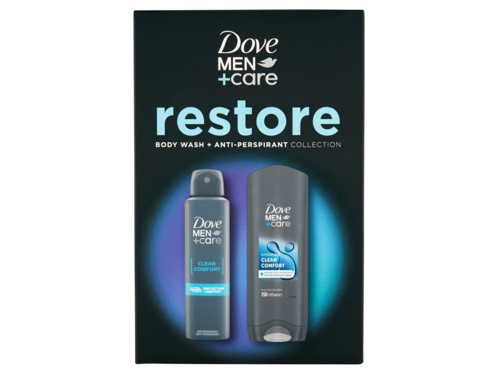 Darilni set Dove Men CLEAN RESTORE (gel za prhanje 250 ml + antiperspirant 150 ml)
