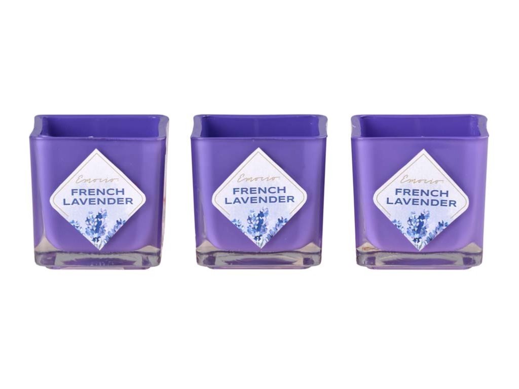 Dišeča sveča Emocio v steklu francoska sivka 3 kosi v škatli 51x51x52mm