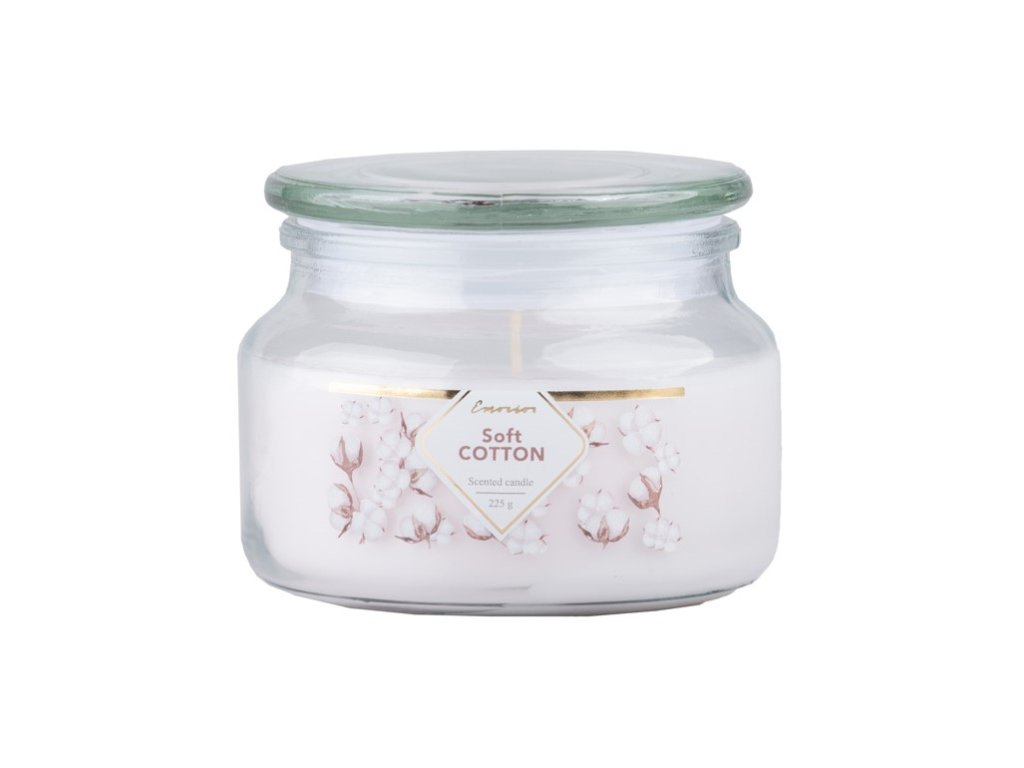 Dišeča sveča Emocio v steklu Soft Cotton s steklenim pokrovčkom 100x79 mm
