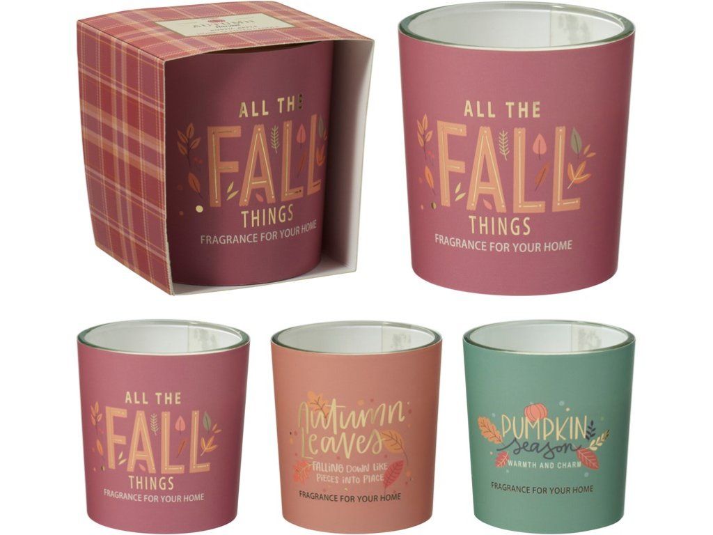Elegantna sveča v kozarcu z značilnim jesenskim vonjem (npr. jabolko, cimet). Dostavljena v darilni papirnati škatli z okrasjem. Idealno kot darilo ali lep dodatek k notranjosti.Dodatni parametri