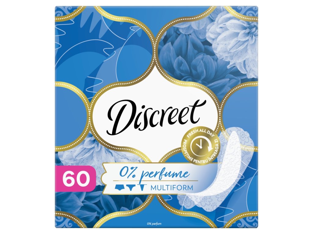Ne glede na vaš stil lahko ves dan uživate v občutku svežine in samozavesti . Vložki Discreet Air so tanjši od 1 mm , zato jih sploh ne boste čutili. So prožni in se prilagodijo vsakemu kroju spodnjega perila . Vložki Discreet omogočajo koži na intimnih predelih, da naravno diha, kar zagotavlja do 12 ur svežine in udobja. Ne glede na to, kaj vam prinese dan, se prilagodijo vašemu gibanju.