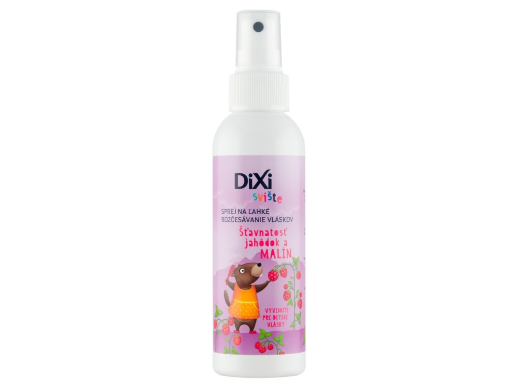 Razčesovalni sprej Dixi Marmot s sočnim sadnim vonjem jagod in malin olajša razčesavanje neubogljivih ali zapletenih otroških las. Nežna in negovalna formula je bila razvita posebej za otroke.