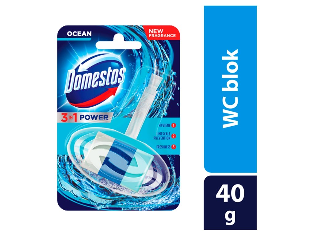 Domestos 3 v 1 trdni bloki za stranišče so sestavljeni iz treh posebnih plasti in združujejo tri učinke. Odstranjujejo okolje za razmnoževanje bakterij. Preprečujejo nastanek vodnega kamna. Zahvaljujoč vsebini odišavljenega gel traku po vsakem splakovanju pustijo dolgotrajen svež vonj.