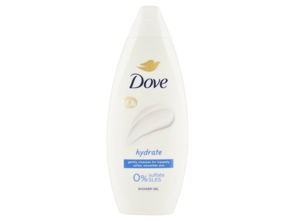 Gel za prhanje Dove hydrate zagotavlja ekskluzivno nego kože zahvaljujoč nežnim vlažilnim in čistilnim sestavinam. Skrivnost formule gela za prhanje Dove je vsebnost vlažilnih sestavin, ki se naravno pojavljajo v koži in se hitro vpijejo. Hkrati vsebujejo nežne čistilne sestavine brez sulfatov, zato je formula primerna tudi za bolj občutljivo kožo. Po prvem prhanju bo koža mehkejša in bolje navlažena. Gel za prhanje Dove hydrate z nežnim pudrastim vonjem nežno očisti za takoj mehkejšo in bolj gladko kožo.