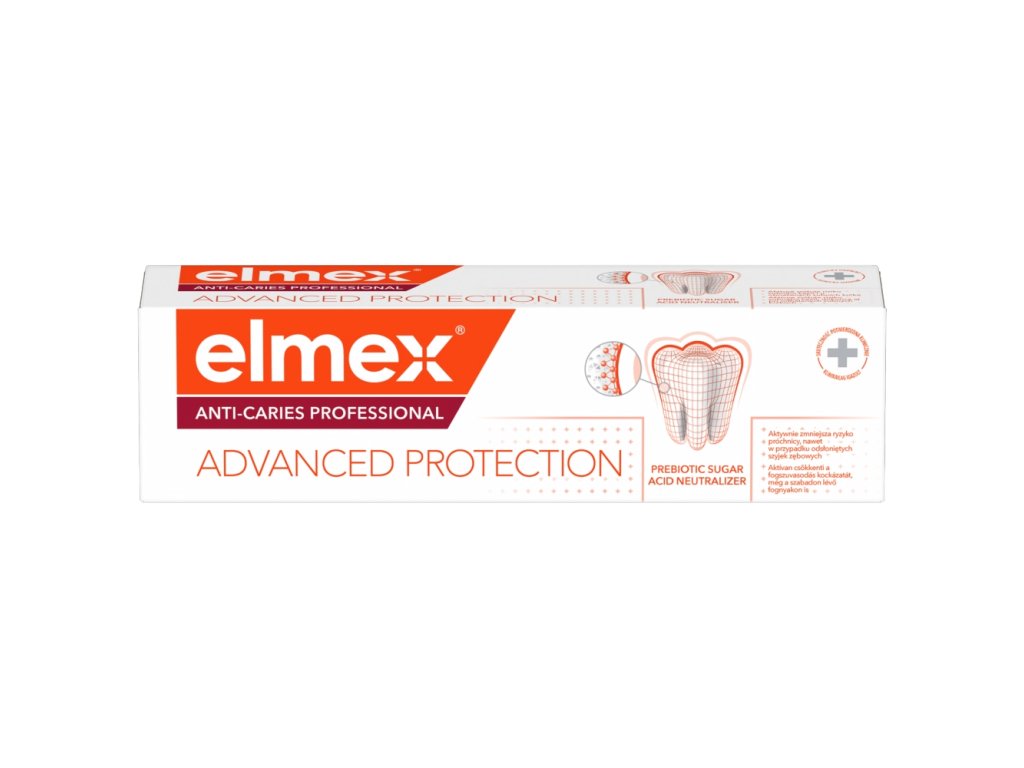 Profesionalna zobna pasta Elmex Anti-caries vsebuje edinstveno tehnologijo nevtralizacije sladkornih kislin, ki neposredno deluje proti sladkornim kislinam v zobnih oblogah – glavnem vzroku za zobno gnilobo. V kombinaciji s fluoridom in kalcijem se zobje remineralizirajo 4-krat učinkoviteje – za močne in odporne zobe.
