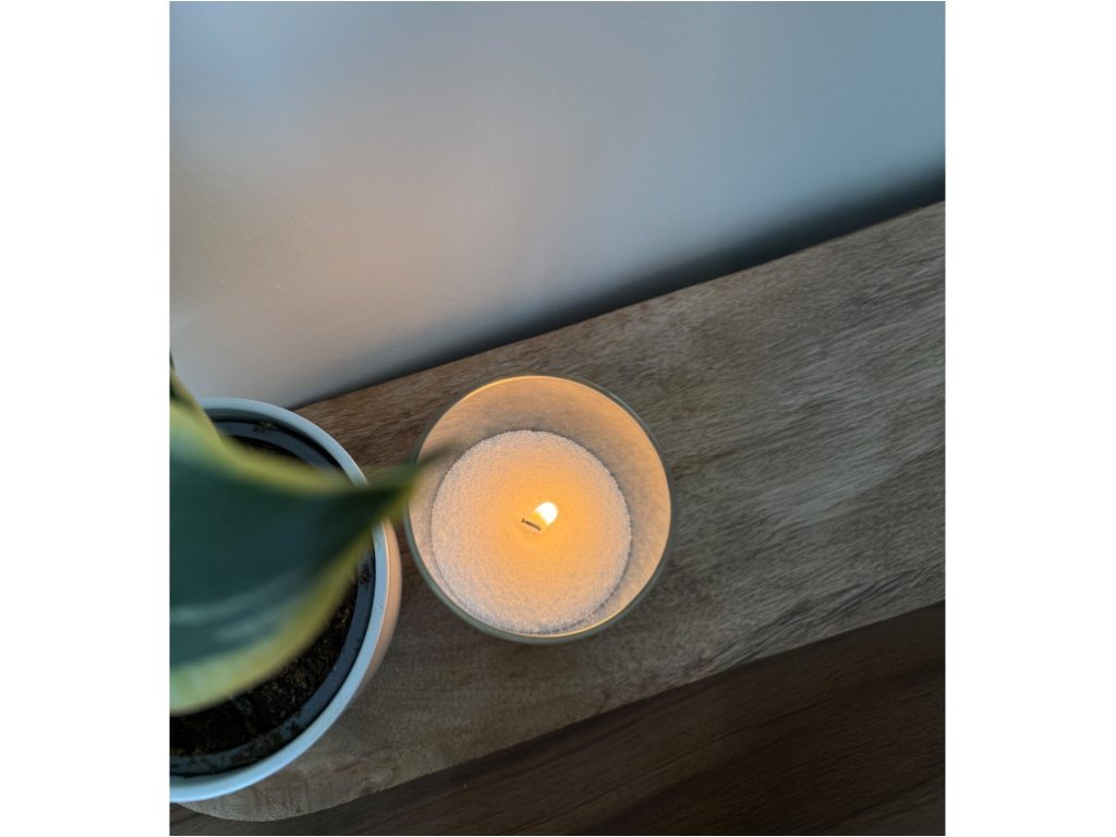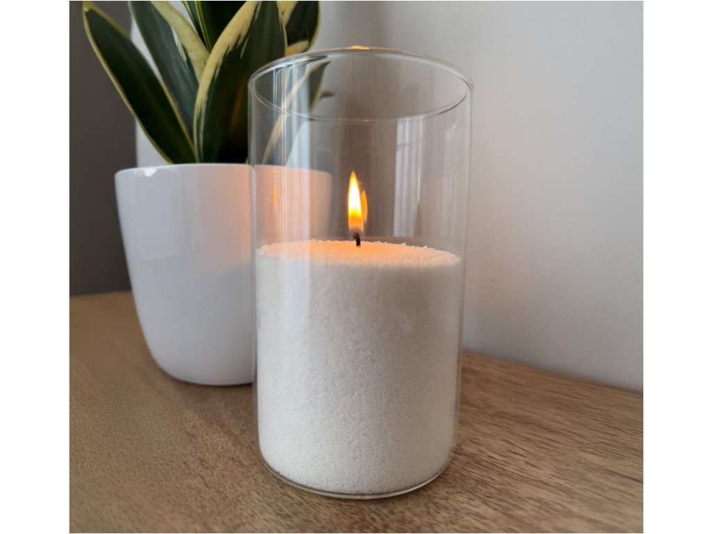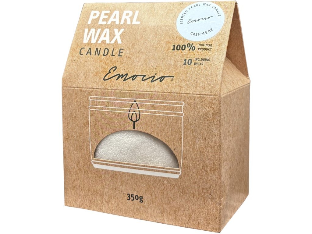 Emocio sveča v prahu 350 g kašmir + 10 stenjev, dišeča bela