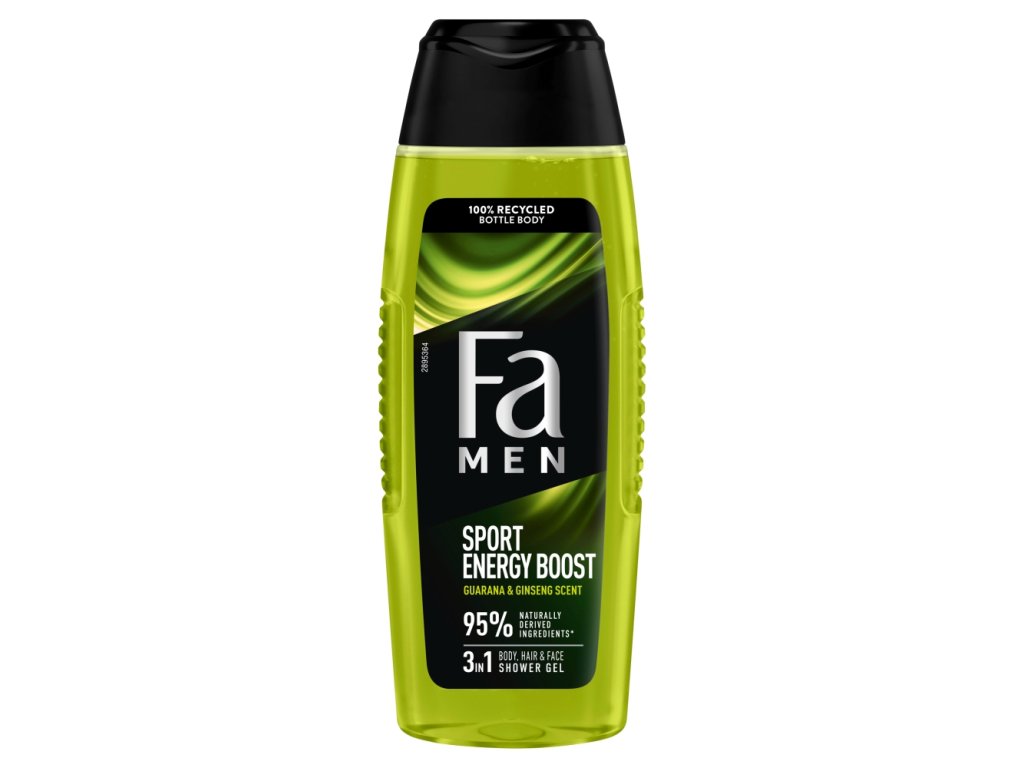 Izkusite dolgotrajno svežino gela za prhanje Fa Men Sport Energy Boost z osvežilnim vonjem guarana in ginseng .