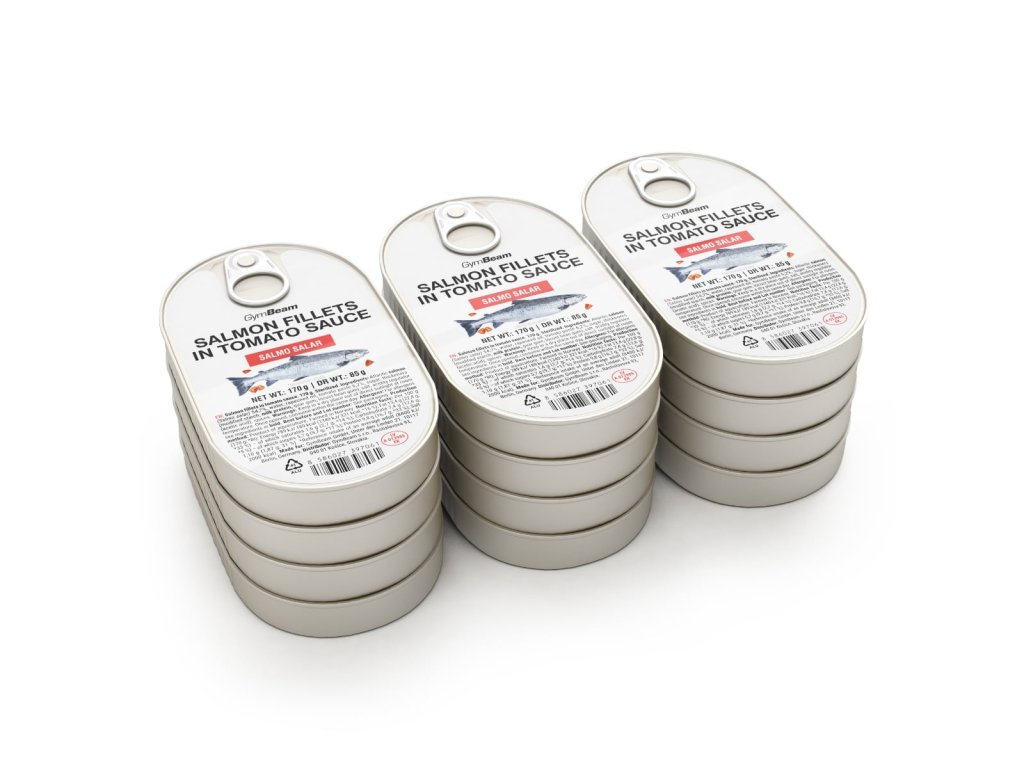 Fileji lososa v paradižnikovi omaki – konzerviran losos z visoko vsebnostjo beljakovin, ki podpira rast in vzdrževanje mišic