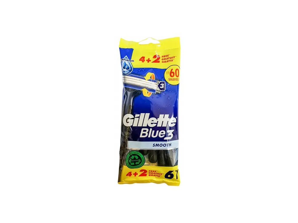Gillette Blue3 je britvica za enkratno uporabo, ki ponuja udobno in učinkovito britje. Ta komplet vsebuje 4 britvice in 2 dodatna britvica brezplačno, kar zagotavlja dolgotrajno uporabo po odlični ceni.