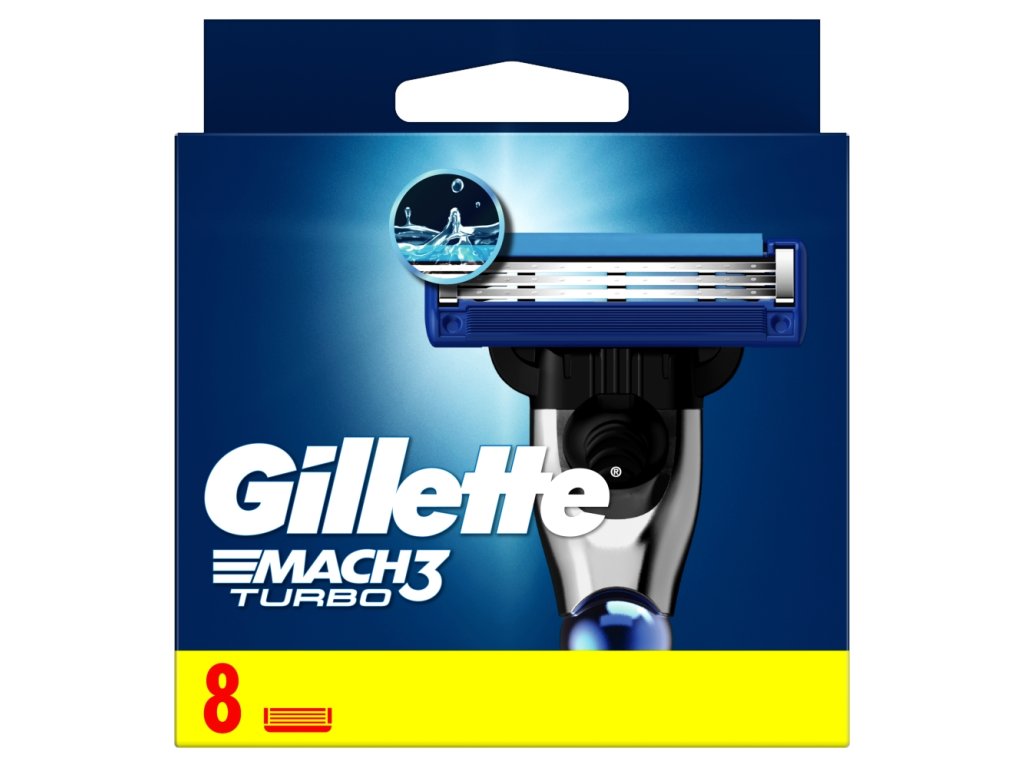 Nadomestne glave Gillette Mach3 Turbo imajo 3 rezila za nego , ki omogočajo lažje britje z manj vlečenja in sunkanja (v primerjavi z britvico Blue3). Velik vlažilni trak drsi po koži, deset zaščitnih mikro loputic pa napne kožo in pripravi brado na temeljito britje. Uživajte v udobnem in dolgotrajnem britju z brivnimi glavami Gillette Mach3 Turbo – 1 glava zadostuje za do 15 natančnih britij!