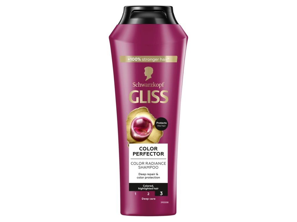 Formula Gliss Kur s keratinskim serumom obnavlja obstoječe poškodbe in preprečuje prihodnje. Šampon Ultimate Color za barvane , tonirane ali pramene lase s tehnologijo 3D-Color-Luminance zapečati in krepi lasna vlakna za učinek proti bledenju, sijaj in zaščito barve do 12 tednov .