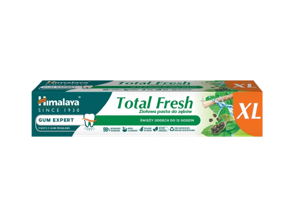 Zobna pasta Himalaya Herbals Gum Expert Total Fresh je 100 ml , zasnovana za celovito nego zob in dlesni . Zahvaljujoč vsebnosti naravnih zeliščnih izvlečkov pomaga čistiti zobe, odstranjevati zobne obloge in ščititi zobno sklenino , hkrati pa prispeva k negi dlesni in preprečevanju njihovega draženja. Pasta vsebuje sestavine z antibakterijskimi in pomirjujočimi učinki , ki spodbujajo občutek svežine v ustih in splošno ustno higieno. Himalaya Herbals Gum Expert Total Fresh je primerna za vsakodnevno uporabo in zagotavlja dolgotrajno svež dah . Izdelek je dermatološko in klinično testiran ter je primeren za odrasle in mladostnike.