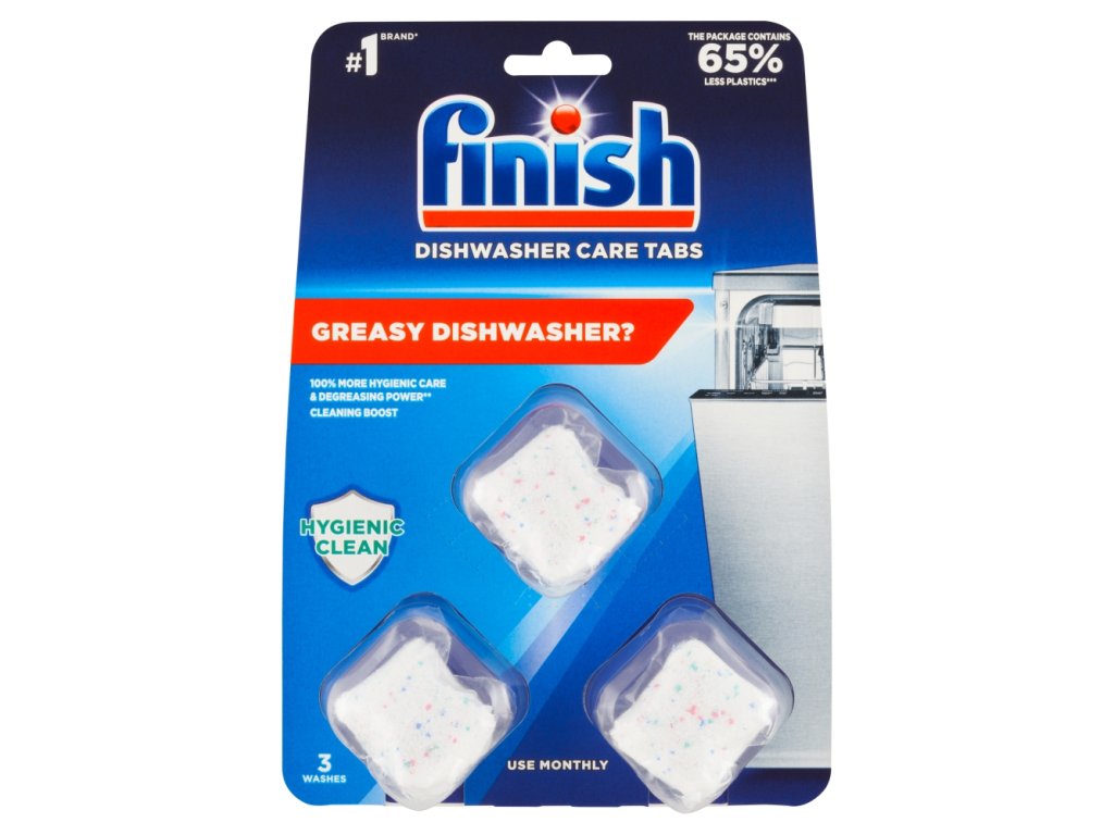 Čistilo za pomivalni stroj Finish učinkovito odstranjuje maščobo in vodni kamen. Čisti filter, vrtljive ročice in odpadke. Zahvaljujoč njegovi uporabi bo vaš pomivalni stroj vedno kot nov, vaša posoda pa bo bleščeče čista.