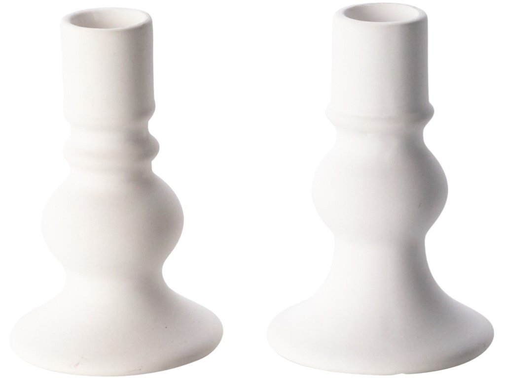 Keramični svečniki 2 kosa + 2 kosa stožčastih sveč (beli)