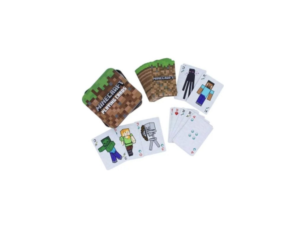Igralne karte Joker v pločevinasti škatli z motivom Minecrafta. Vsebuje 54 kart, vključno z 2 jokerjema.