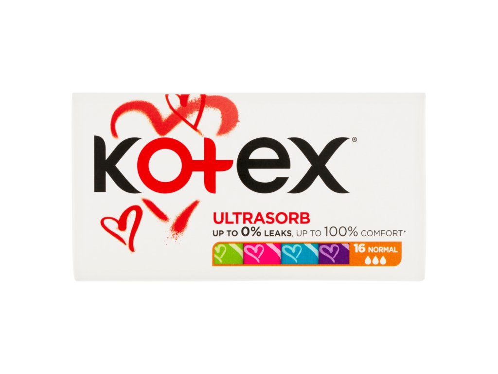 Tamponi Kotex Ultrasorb imajo posebej zasnovano modro vpojno jedro iz visoko vpojnih vlaken, ki preprečujejo puščanje. Gladka svilnata površina in zaobljena konica za lažje vstavljanje. Edinstven sistem » Twist&open « za enostavno odvijanje tampona. Posamezni tamponi, pakirani v elegantnih pastelnih barvah, ki izražajo samozavest tudi med menstruacijo. Tamponi UltraSorb Normal različica za lahke do zmerne krvavitve.