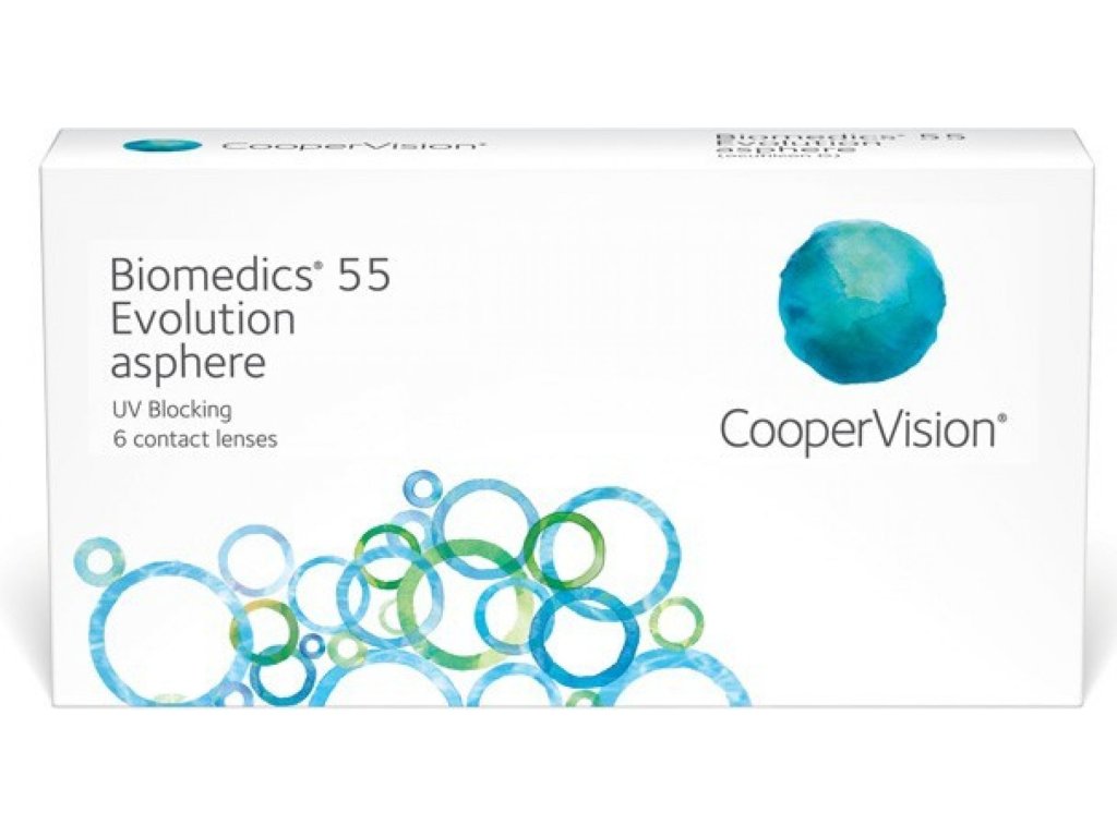 Biomedics 55 Evolution (6 leč) so mesečne kontaktne leče za vsakodnevno nošenje z asferično zasnovo. Asferična zasnova omogoča oster vid tudi v situacijah, kjer se ta včasih izgubi, kot so vožnja avtomobila, šport ali v temi. Prav tako lahko popravi nizke vrednosti astigmatizma. Biomedics 55 Evolution je ena cenovno najugodnejših kontaktnih leč v svoji kategoriji in predstavlja novo generacijo znanih in preizkušenih kontaktnih leč Biomedics 55 (znanih tudi kot Mediflex 55, Medifree 55).