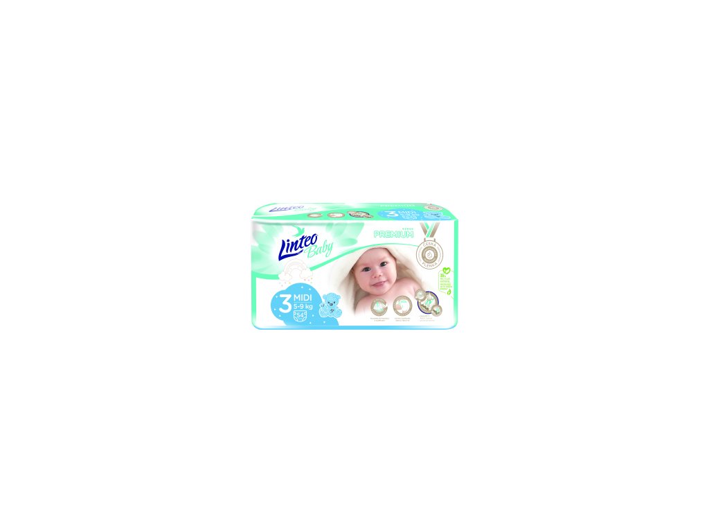 Linteo Baby Premium Midi otroške plenice 5 do 9 kg, 54 kosov