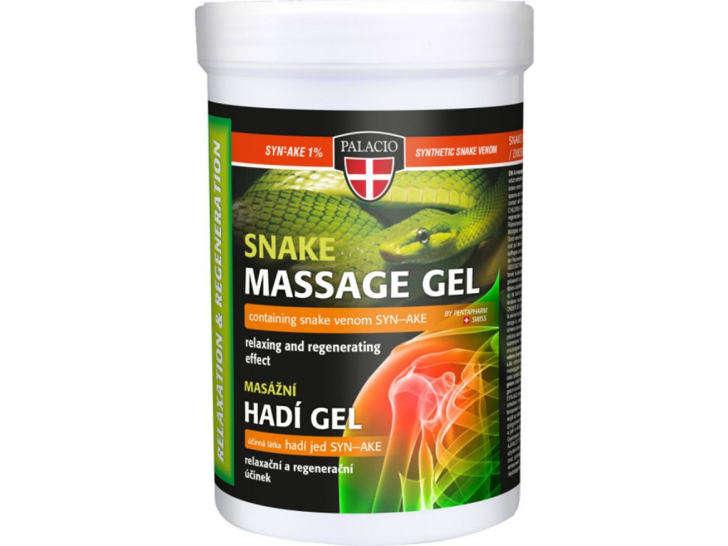 Masaža z gelom s kačjim strupom pomaga pri sprostitvi, regeneraciji in odvajanju. Masaža kože na področju mišic, sklepov in hrbta z gelom s kačjim strupom in izvlečki zdravilnih zelišč, kot so gabez, divji kostanj ali navadni brin, daje občutek svežine in pomaga odpravljati utrujenost.