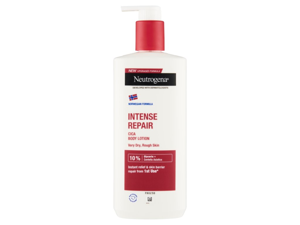 Neutrogena® Intenzivno regenerirajoči losjon za telo 400 ml ponuja veliko več kot le hidratacijo za vsakodnevno obnovo zelo suhe kože. Zahvaljujoč vsebnosti norveške formule deluje kot negovalni ovoj. Takoj odstrani napetost in nelagodje. Pomaga pri regeneraciji zelo suhe in hrapave kože. Že po prvi uporabi boste takoj občutili olajšanje in znatno sprostitev. Vaša koža bo vsak dan intenzivno navlažena, mehkejša in mlajša. Nežno odišavljena. Zahvaljujoč kremasti formuli se takoj vpije. Kože ne pušča mastnega ali lepljivega občutka.