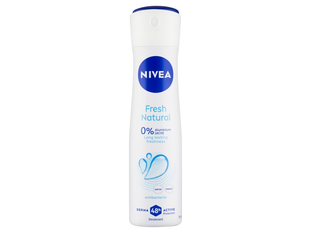 NIVEA Fresh Natural deodorant v spreju za ženske 150 ml je osvežilni deodorant v spreju, ki zagotavlja do 48 ur zanesljive zaščite pred telesnim vonjem. Njegova nežna formula brez aluminijevih soli vsebuje morske minerale, ki negujejo kožo in jo pustijo mehko in svežo.