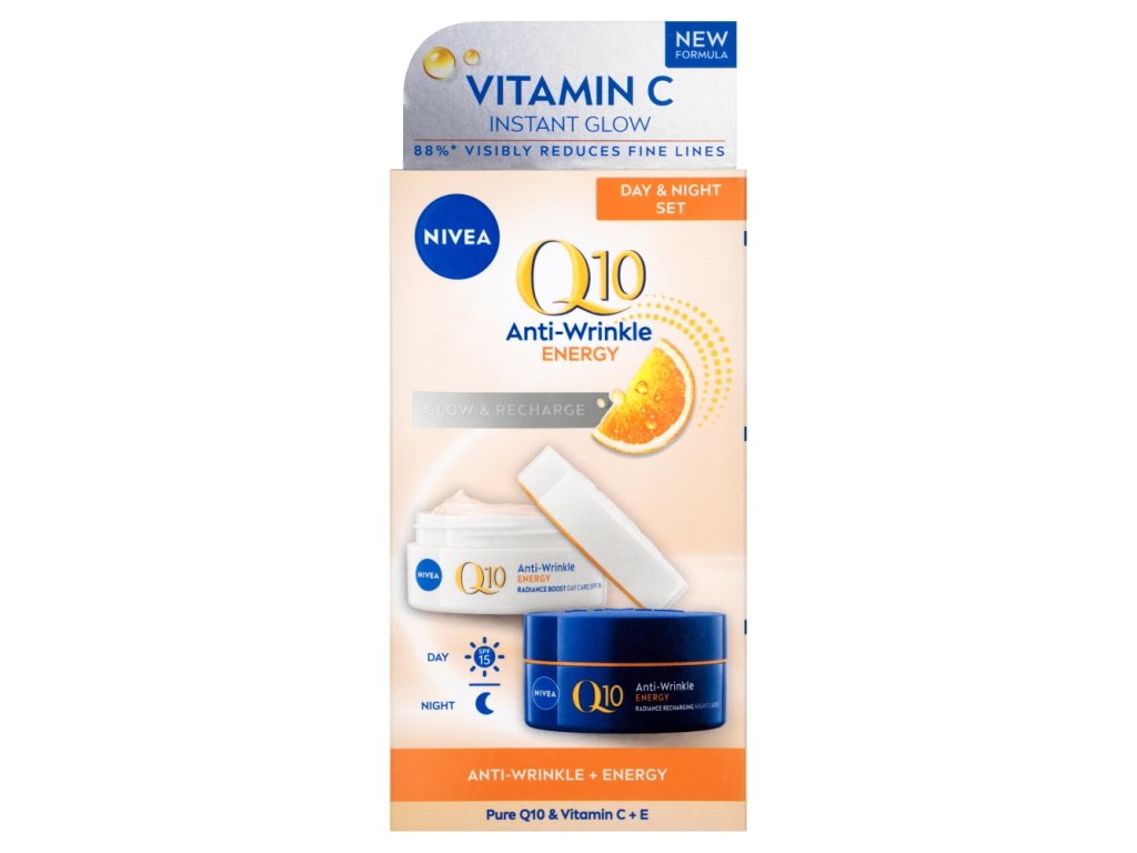 Nivea Q10 Energy poživljajoča dnevna in nočna krema proti gubam 2 x 50 ml dvojno pakiranje