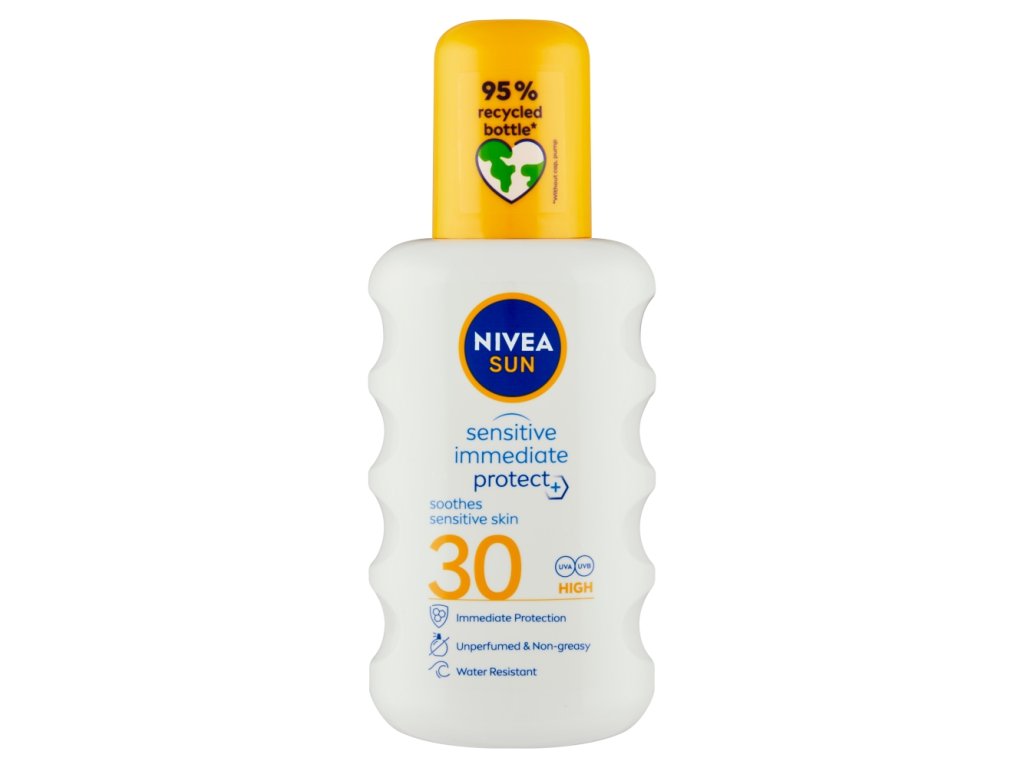 Ključne lastnosti Nivea Sun Sensitive OF 30 sončnega spreja:
