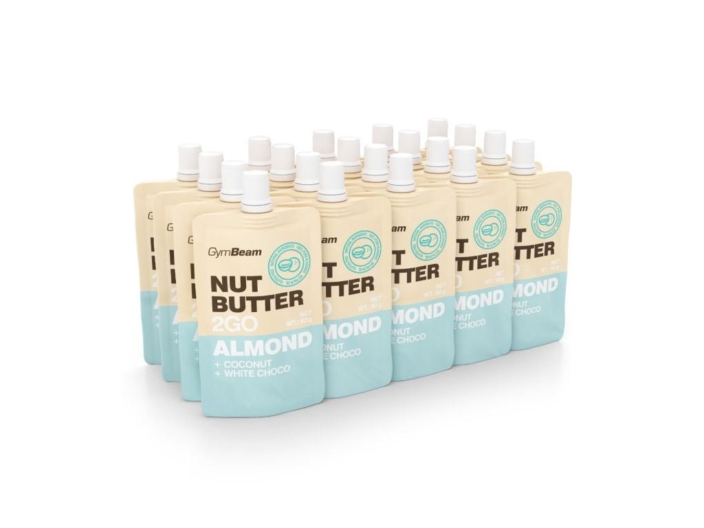 Mandljevo maslo 2GO - Mandljevo maslo s kokosom in belo čokolado - poslastica v praktični embalaži, v kateri lahko uživate na poti in med pohodništvom