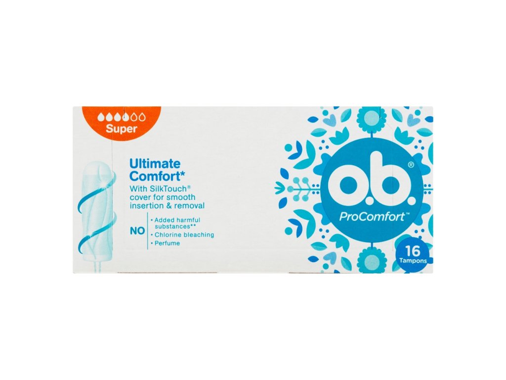 Tamponi ob® ProComfort™ s tehnologijo Dynamic Fit™ in edinstveno površino SilkTouch™ so zasnovani za maksimalno udobje in najzanesljivejšo zaščito, kar jih je kdajkoli na voljo v portfelju tamponov ob®. Njihova gladka površina omogoča enostavno vstavljanje, zaradi česar so tamponi ob® ProComfort™ zelo enostavni in udobni za uporabo, tudi v dneh z rahlim krvavenjem ali če s tamponi šele začenjate.